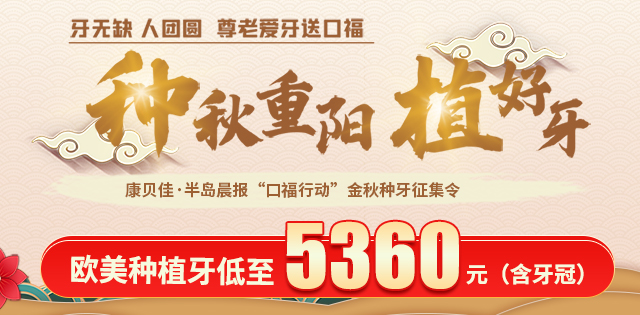 金秋送爽,丹桂飘香。今年10月,国庆节与中秋节双节同庆,月底又迎来了我国法定的老人节重阳节,是大家回家团聚、享受亲情的时刻。大连康贝佳口腔特举行美牙优惠大放送!意在情意浓浓的节日里为各位朋友送上一份祝福、送上一份健康,让更多牙齿缺失及其他口腔困扰的朋友重新拥有一口健康美丽的牙齿。
